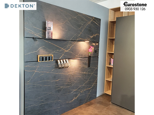 Đá Dekton Laurent - EBR7301 được lấy cảm hứng từ đá tự nhiên Port Laurent. Dekton Laurent nổi bật với những đường vân rạn màu vàng đan xen nổi bật trên nền đá nung kết nâu sẫm đầy ấn tượng. Với vẻ đẹp sang trọng, độc đáo Dekton Laurent khá được ưa chuộng cho nhiều hạng mục trang trí nội - ngoại thất như ốp bếp, lavabo, mặt bàn, ốp tường, mặt tiền,...